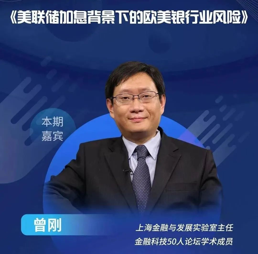 导读:近日,由金融科技50人论坛联合神州信息、高景立学共同推出的“2023数字金融公益直播课”第三期顺利开讲。本期嘉宾邀请到上海金融与发展实验室主任、金融科技50人论坛学术成员曾刚,分别从“系统性风险”“流动性风险”“对银行业风险的判断与展望”“对中国银行业的启示”四个方面,阐述了“美联储加息背景下的欧美银行业风险”
